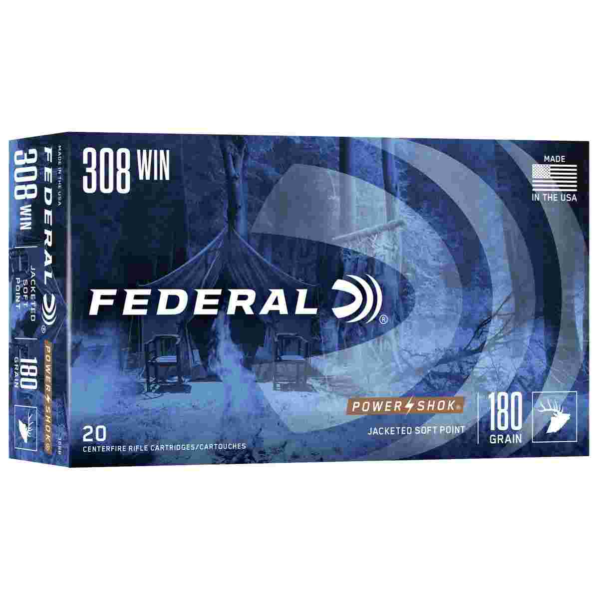 Federal Power-Shok Rifle Ammunition .308 Win 180 gr SP 2570 fps – 20/ct