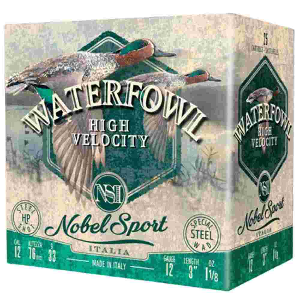 Nobel Sport Steel Waterfowl High Velocity Shotshells 12ga 3″ 1-1/8oz 1500 fps #4 25/ct